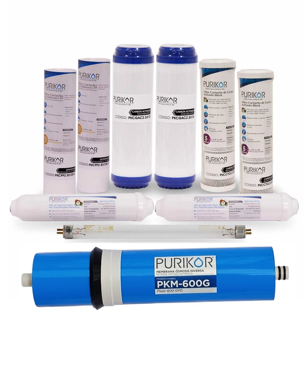 Kit de mantenimiento 12 meses para equipos de ósmosis inversa 600G con UV compuesto por: